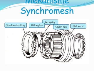 Fungsi dari komponen tersebut adalah untuk menyamakan putaran hub sleep dengan output gear ketika keduanya belum terkait. Hasilnya ketika Anda melakukan perpindahan pada mobil manual akan halus.